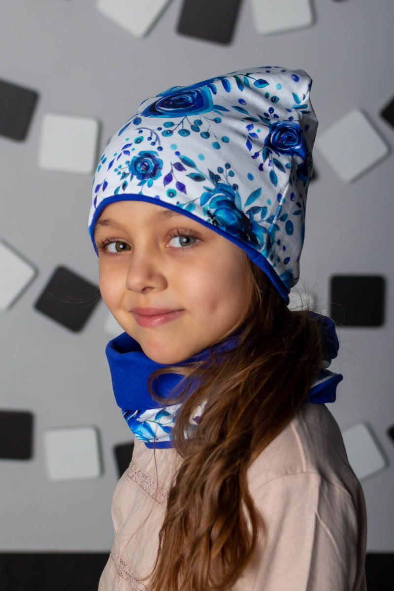 Комплект: шапка + шарф-снуд для девочек в насыщенной современной рацветке