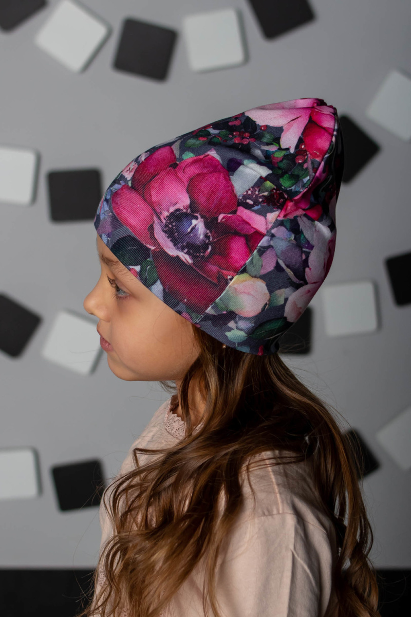 Детская шапочка для девочек в современных приятных цветах.