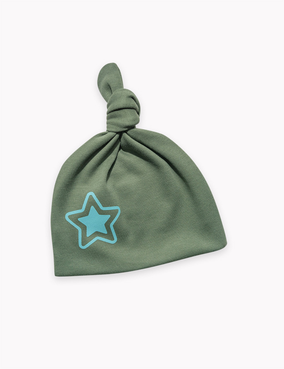 Забавная модель с узелком на макушке дополнена регулируемым отворотом. Стильный принт, нанесённый методом шелкографии на ткани. Идеально подойдет для ежедневного гардероба малышей, на выписку, в роддом, на прогулку.