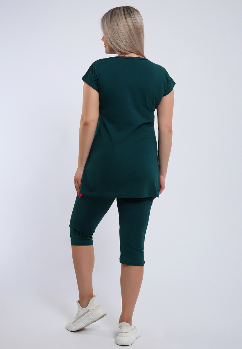 Костюм доступен в широком размерном ряде: 46, 48, 50, 52, 54, 56, 58, 60, что позволяет подобрать идеальный вариант для каждой женщины. Изумрудный цвет изделия делает его универсальным и легко сочетаемым с различными аксессуарами и обувью.