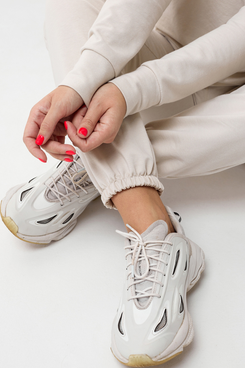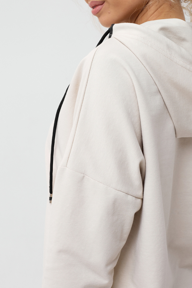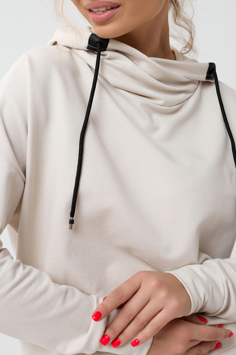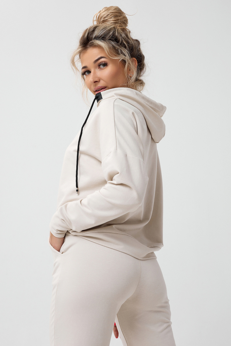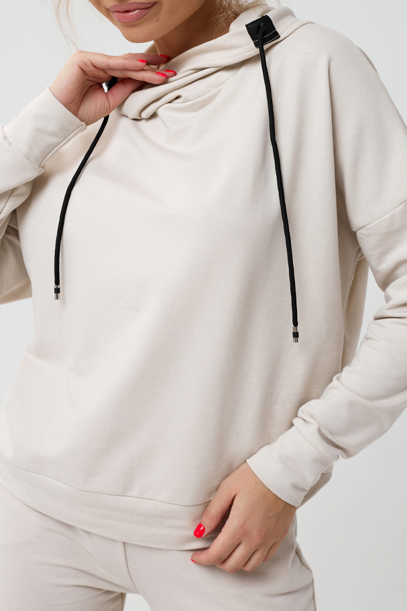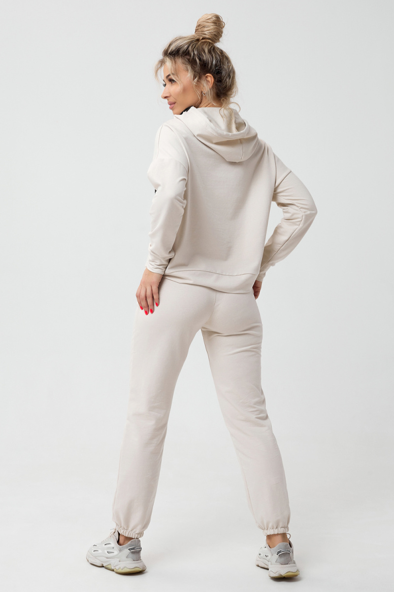Молодежный костюм из футера 2-х нитки. Худи с длинным рукавом и с капюшоном. Брюки - джоггеры с резинкой на ногах, по бокам внутренние карманы, пояс на резинке. Очень стильный и необычный капюшон.
