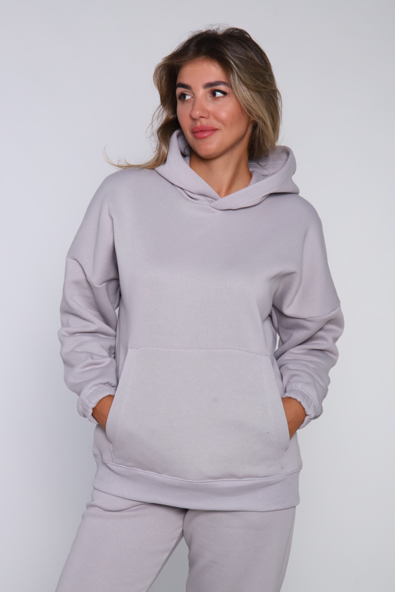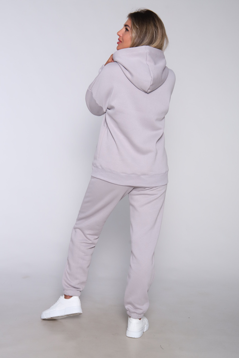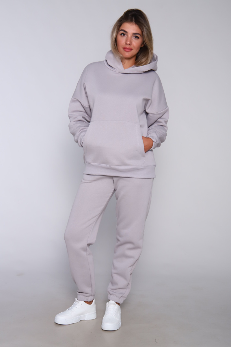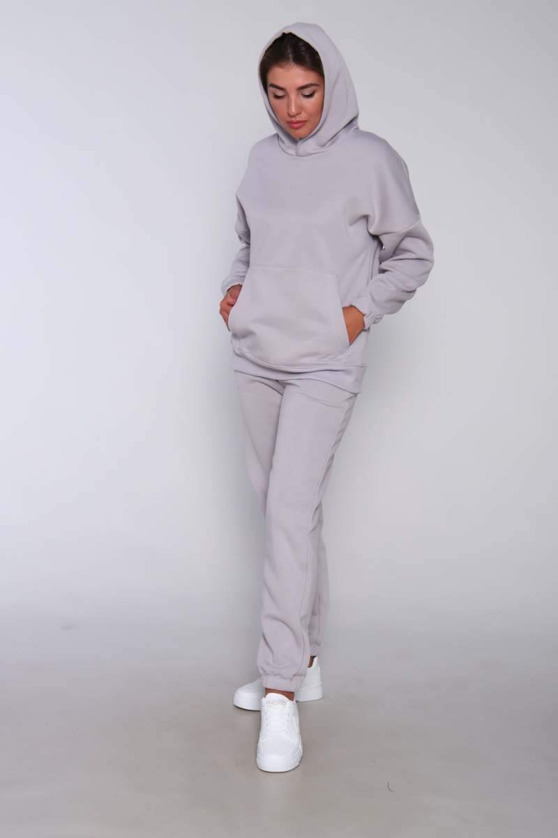 Теплый костюм с брюками. Толстовка с капюшоном и накладным карманом-кунгуру. Брюки на резинке с карманами.